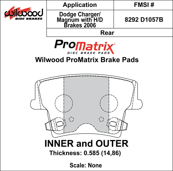 Wilwood Brake Pad part number 150-D1057BK has a pad type #D1057B with compound PM