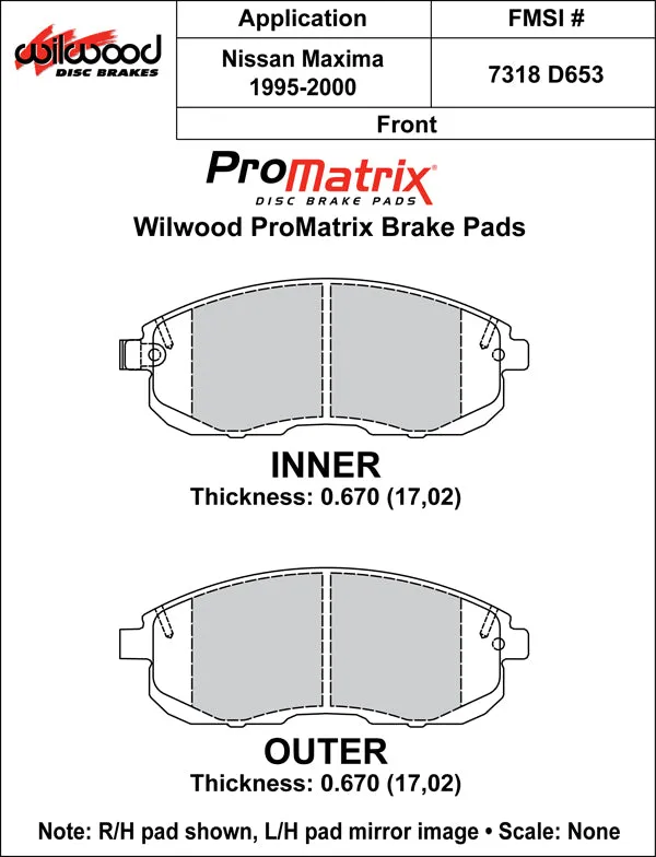Wilwood Brake Pad part number 150-D0653K has a pad type #D653 with compound PM