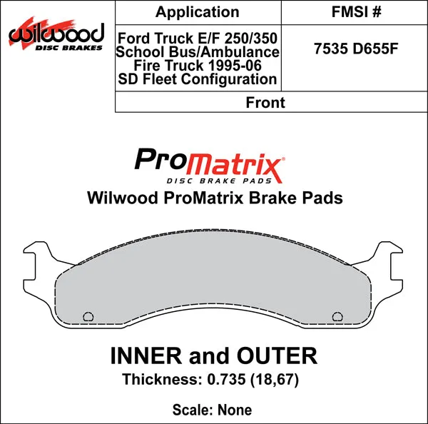 Wilwood Brake Pad part number 150-D0655FK has a pad type #D655F with compound PM