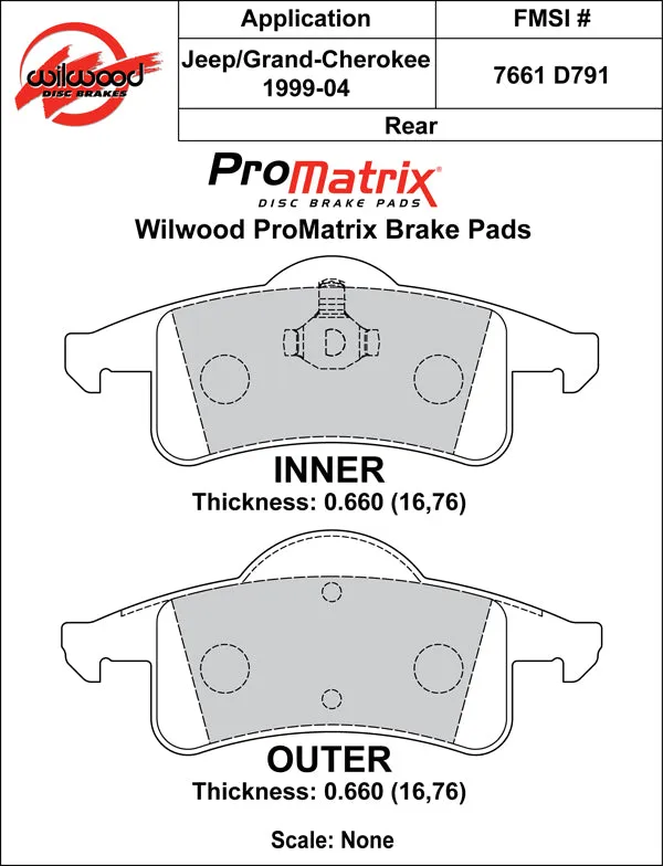 Wilwood Brake Pad part number 150-D0791K has a pad type #D791 with compound PM