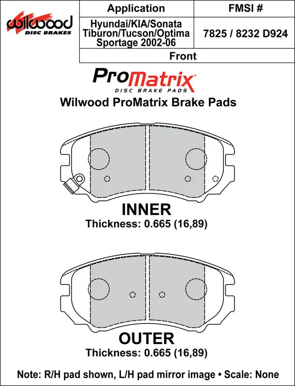 Wilwood Brake Pad part number 150-D0924K has a pad type #D924 with compound PM