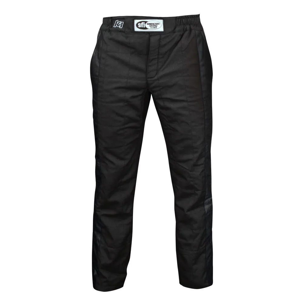 Experience top-tier safety and comfort with the K1 Sportsman SFI Racing Suit Pants, designed for drivers who demand versatility and performance. Manufacturer certified to the SFI 3.2A/5 specification, these 2-layer Nomex® fire suit pants are engineered for racers and crew members participating in the upper levels of motorsport. The durable Nomex outer shell provides exceptional fire protection, making it a trusted choice for both racers and over-the-wall pit crews. Inside, a soft-knit aramid fiber inner lining delivers additional flame resistance while ensuring top-notch comfort during long stints. Featuring a comfortable elasticized waistband for a secure fit and accommodating boot-cut ankle cuffs, these pants ensure unrestricted movement, allowing you to work the pedals or perform pit crew duties with ease.