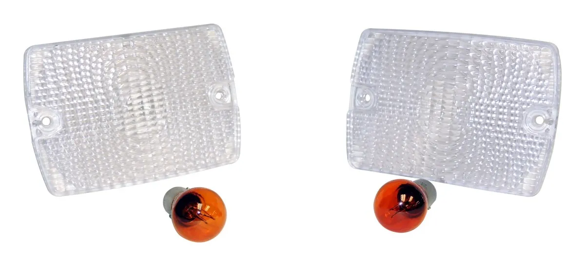 Clear Parking Lamp Set (2) w/ 2 Amber Bulbs for 87-93 Jeep YJ Wrangler