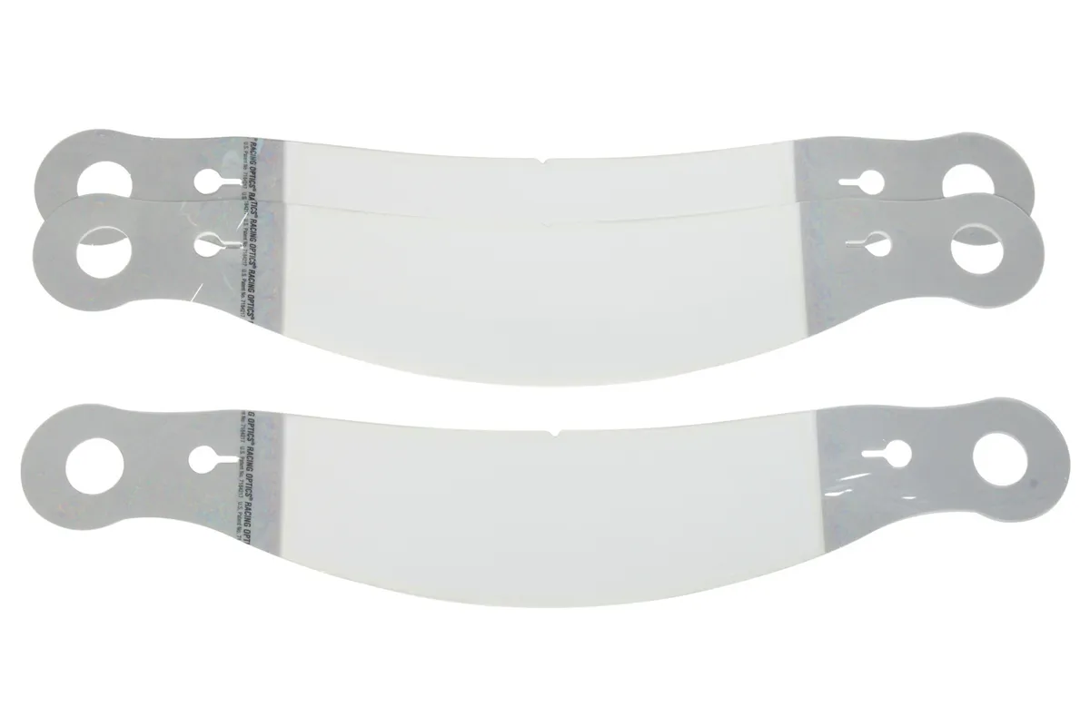 Helmet Shield Tear Off - Perimeter Seal - 2 mm Thick - 12.375 in Center to Center - Plastic - Clear - Bell / Champion / G-Force / Pyrotect / RaceQuip / RCI Helmets - Set of 30