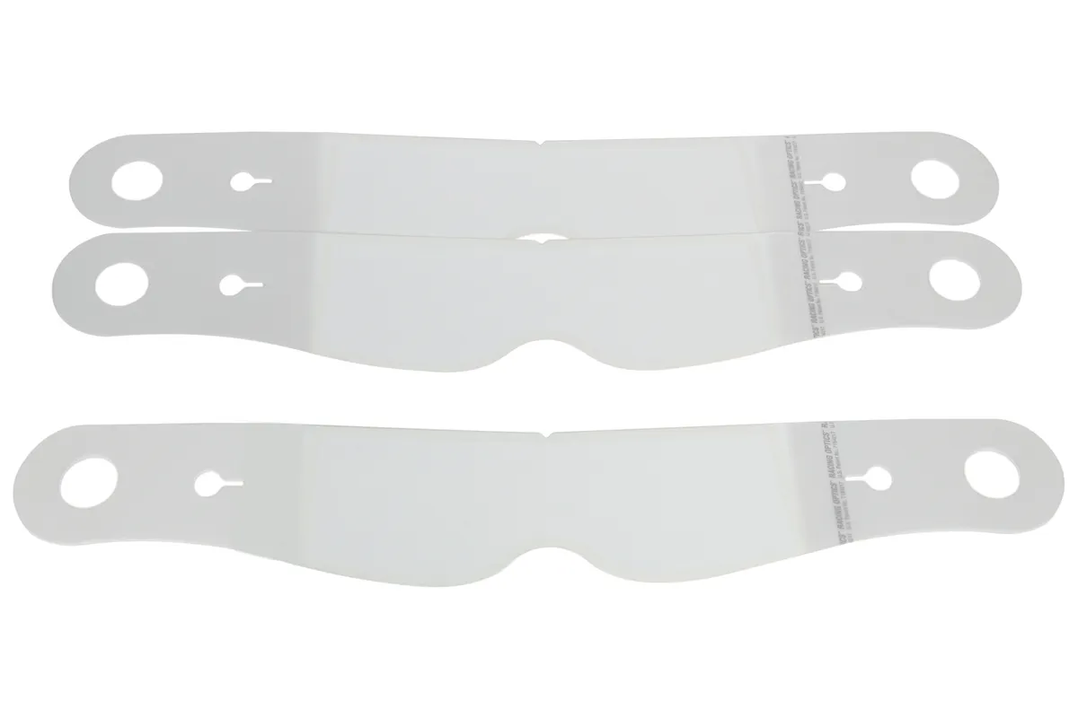Helmet Shield Tear Off - Perimeter Seal - 2 mm Thick - 11.5 in Center to Center - Nose Notch - Plastic - Clear - Simpson Helmets - Set of 30