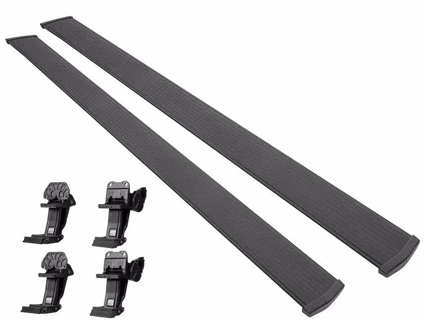 Description: Every truck, Jeep®, or SUV can benefit from a set of running boards. However, only some consumers enjoy the aesthetics. For those who prefer clean, streamlined looks, AMP Research® offers its patented PowerStep™. These heavy-duty, power retractable running boards offer the best of both worlds, deploying when needed and retracting under the body when not in use to preserve looks and ground clearance. As the pinnacle of quality, AMP Research utilizes only the finest materials in its PowerStep line. Die-cast aluminum boards offer exceptional strength at a low weight, while stainless steel hinge pins and hardware deliver unmatched durability and corrosion resistance. The step's surface is treated with a military-grade PTFE coating, guarding the underlying alloy against oxidation and abrasions—the black finish also provides a sleek, discreet appearance. AMP Research PowerStep running boards make entering and exiting even the tallest vehicles a breeze. Featuring extra-wide, 6-inch, non-slip step tread, AMP PowerSteps promote traction in even the worst weather conditions. The integrated low-profile LED courtesy lights illuminate the step surface and surrounding area to ease entry in low-visibility conditions. As a bonus, PowerStep drops far lower than traditional fixed-position running boards, giving passengers a much-needed boost. To simplify the installation process, each set of PowerStep running boards includes a vehicle-specific mounting kit, thorough instructions, and—if applicable—a plug-n-play OBD II module. Each mounting kit contains all necessary mounting brackets, hardware, wiring accessories, and instructions. To ease entry into your ride without sacrificing aesthetics, consider PowerStep running boards by AMP Research—a RealTruck brand.