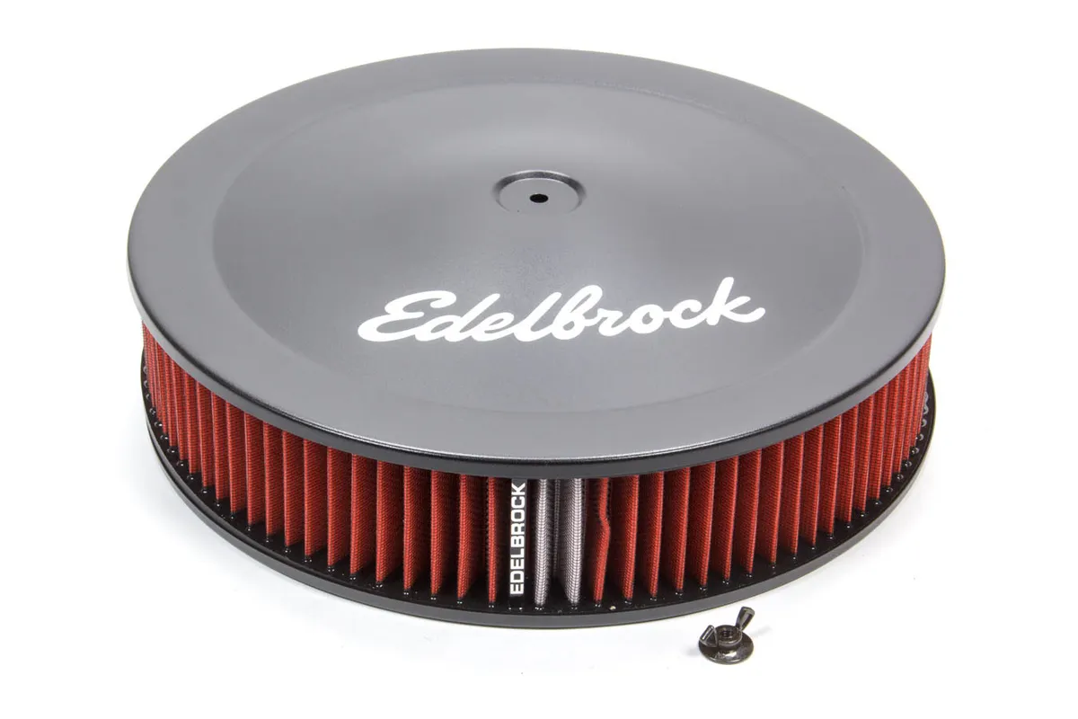 Air Cleaner Assembly - Pro-Flo - 14 in Round - 3 in Element - 5-1/8 in Carb Flange - Dropped Base - Red Cotton Filter - Steel - Black Powder Coat - Kit
