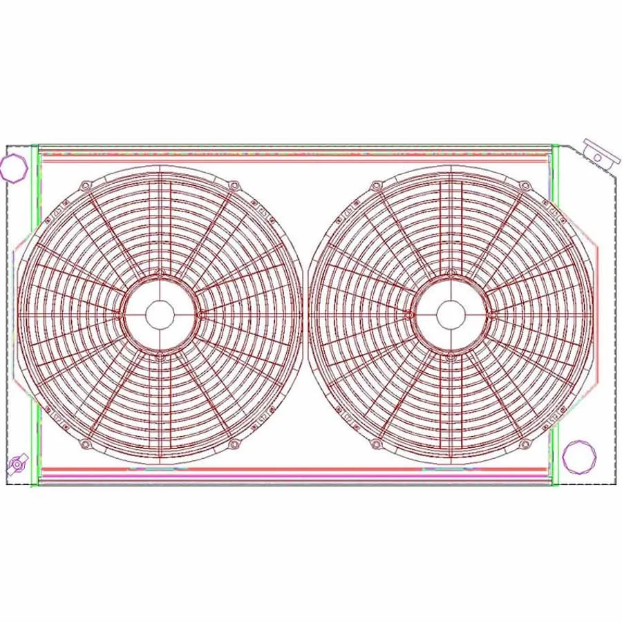 Radiator and Fan - MegaCool - 28 in W x 19 in H x 2.68 in D - Dual Fans - Driver Side Inlet - Passenger Side Outlet - Aluminum - Natural - GM - Kit