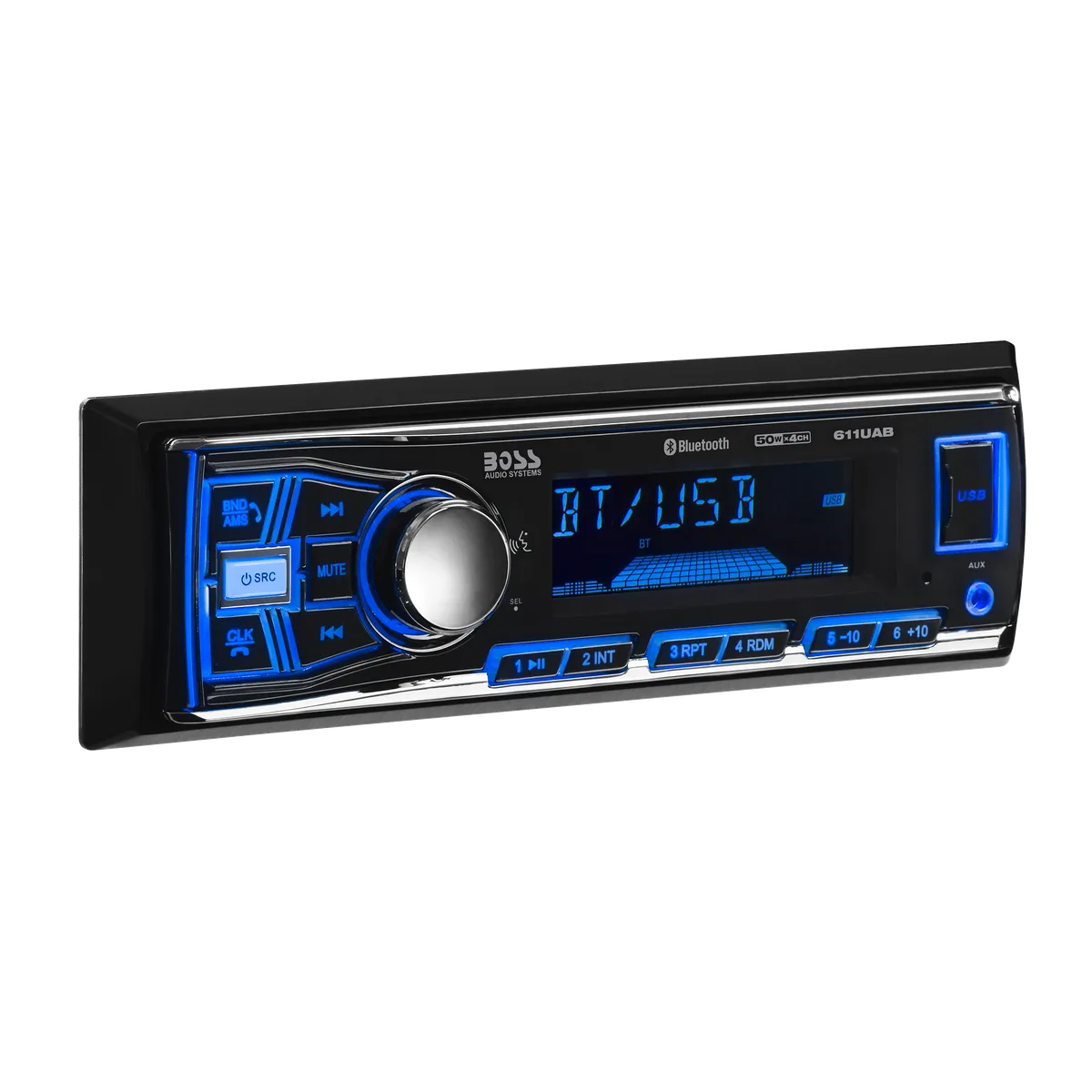 • Single-DIN Fit • Bluetooth® Hands-free • AM/FM Receiver • Switchable US & EU Tuner Frequencies • Push-To-Talk • 50 Watts x 4 Channel