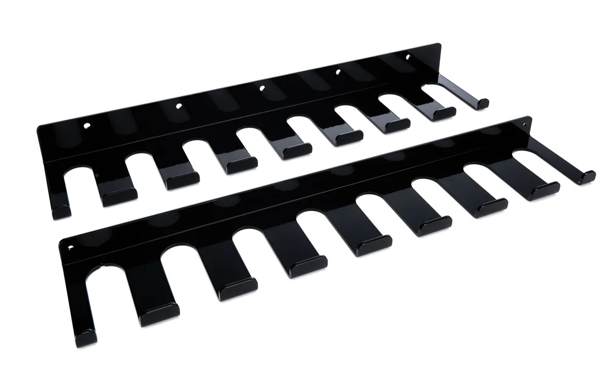 Radius Rod Rack - Wall Mount - Lower - 20 in Long - 16 Rod Capacity - 1.125 in / 1.250 in Radius Rods - Aluminum - Black Powder Coat - Kit