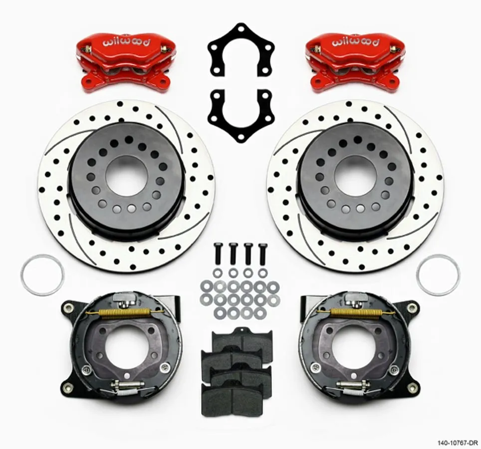 Wilwood FDLI PS Park Brake Kit Drilled Red MoparDana 2.50in Off wSnap Ring Brng