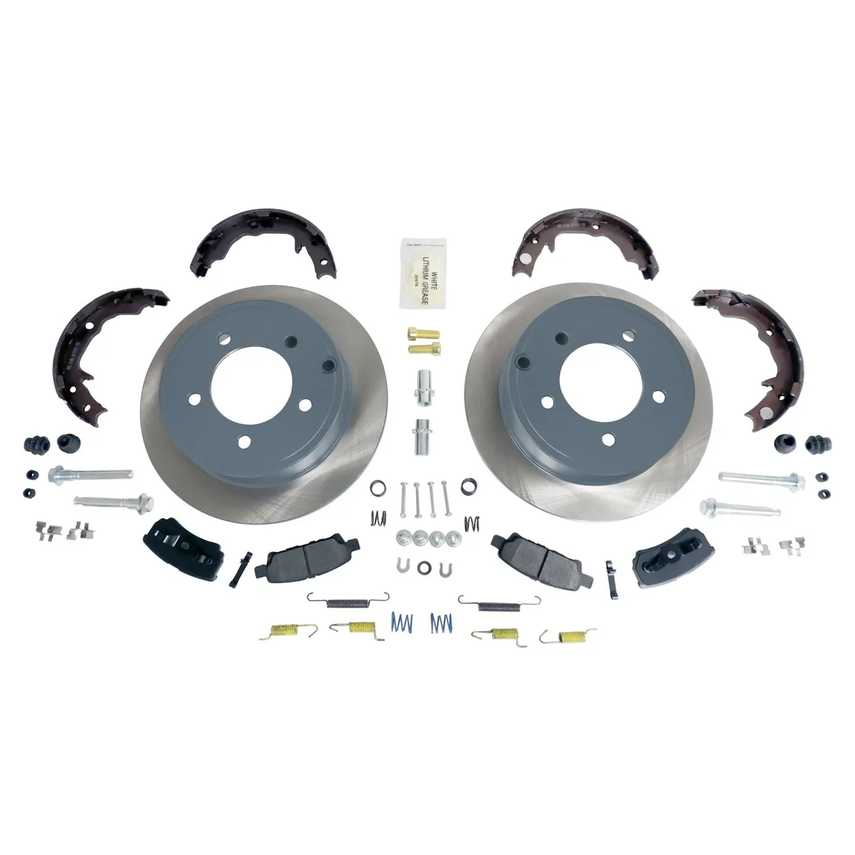Disc Brake Service Kit; Rear; Incl. Pads/Rotors/Parking Brake Shoes/Caliper Hardware Kit/Parking Brake Shoes/Parking Brake Hardware Kit;