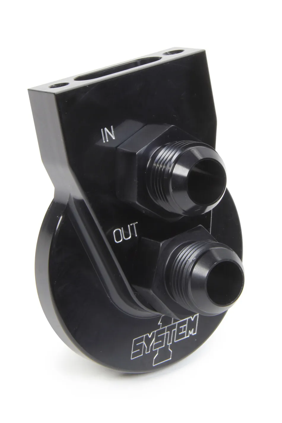 Remote Oil Filter Mount - Single Filter - 1-12 in Thread - 12 AN Male Inlet - 12 AN Male Outlet - Bolt-On - 2-Bolt Flat Mount - Aluminum - Black Anodized - Each