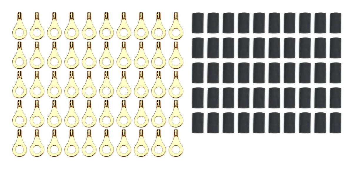 Ring Terminal - 22-18 Gauge Wire - 1/4 in Hole - Heat Shrink Included - Copper - Set of 50