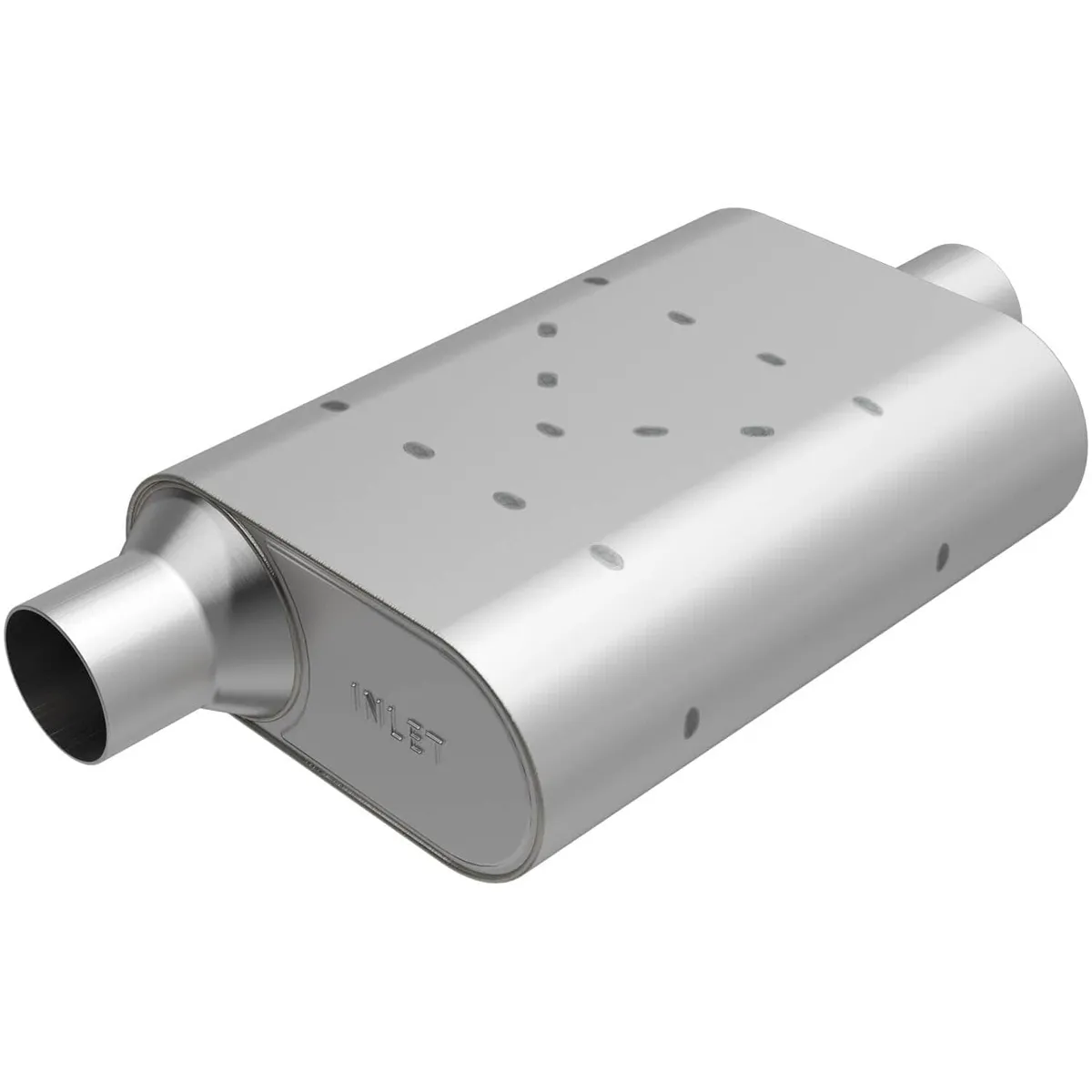 Muffler - Rumble - 3 in Offset Inlet - 3 in Center Outlet - 13 x 4.25 x 9.5 in Oval Body - 18.5 in Long - Stainless - Natural - Universal - Each