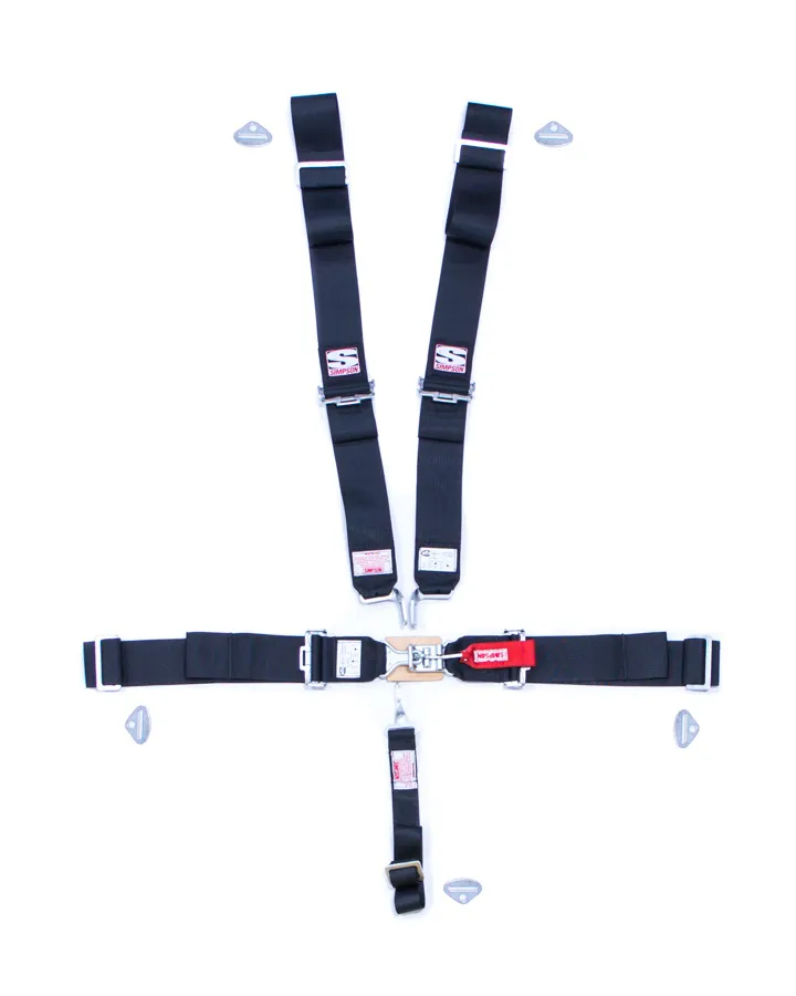 Harness - Sport - 5 Point - Latch and Link - SFI 16.1 - Pull Down Adjust - Bolt-In / Wrap Around - Individual Harness - Black - Kit