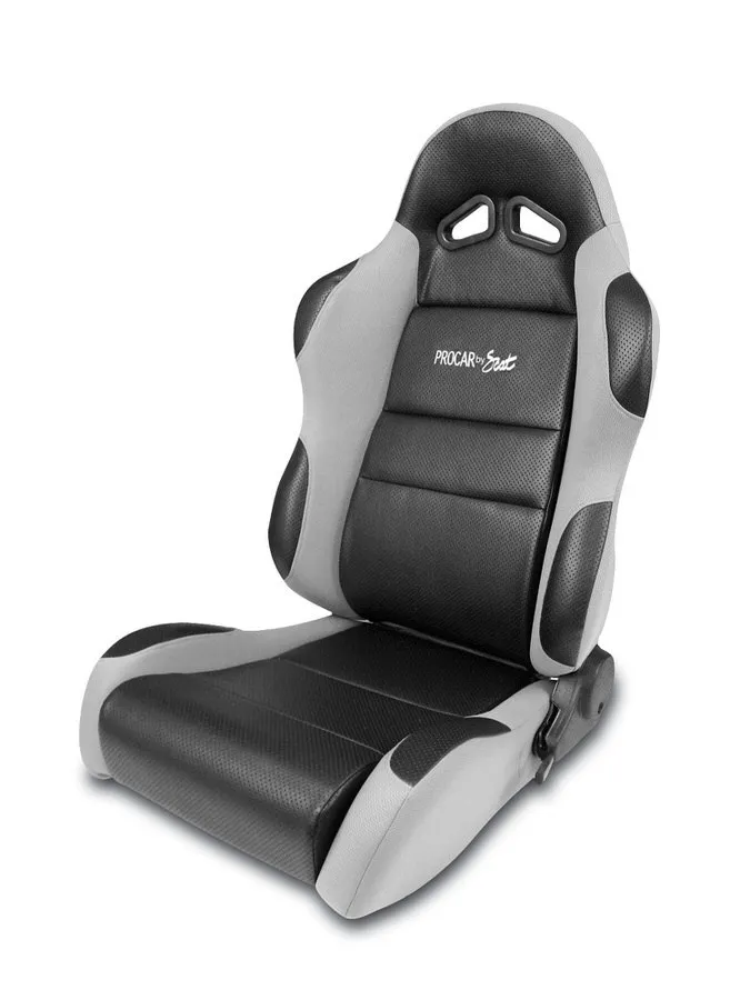 Seat - Sportsman 1605 Series - Driver Side - Sliders - Reclining - Side Bolsters - Harness Openings - Vinyl / Velour - Black / Gray - Each