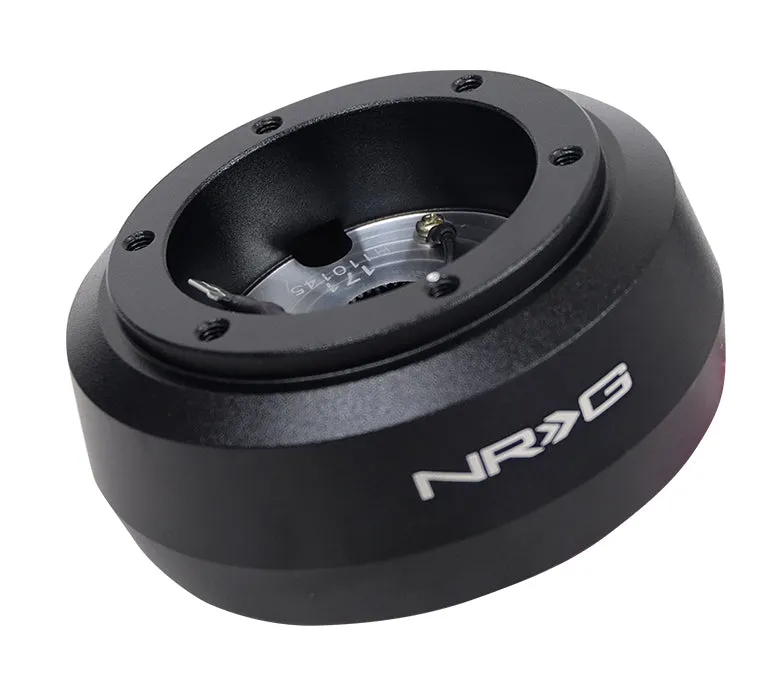 Our iconic Short Hub, and the product that started it all. A steering shaft hub for use with a lockable steering wheel quick-release unit, Patent: US7527293B1 , featuring the shortest possible mounting surface while still retaining the ability to use your horn and turn signals about 99% of the time. The Anodized 6061 Aluminum construction is miles ahead of our competition, in both style and functional aspects. See for yourself. Retain your horn Retain your turn signals 6x70mm bolt pattern Comes with Resistors NRG Innovations Products are designed for off road use only. Keep it on the track.