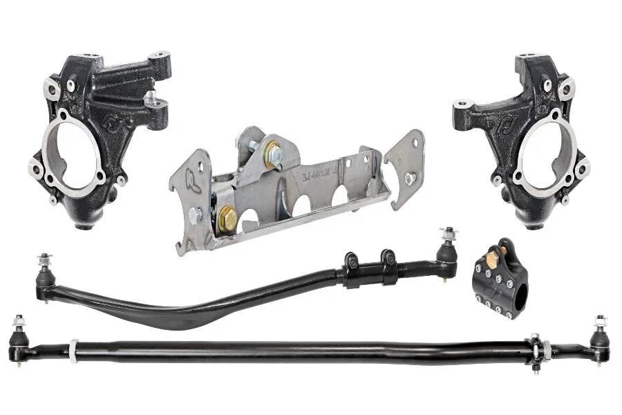 RockJock's Heavy Duty High Steer Knuckle Kit for JL Wrangler, JL Unlimited and JT Gladiator vehicles (with wider Rubicon, Mojave, tow pkg. width axle) replaces the aluminum factory knuckles and raises your tie rod 2 3/4 in. and your drag link 2 1/2 in.. Currectlync steering that is included in this
