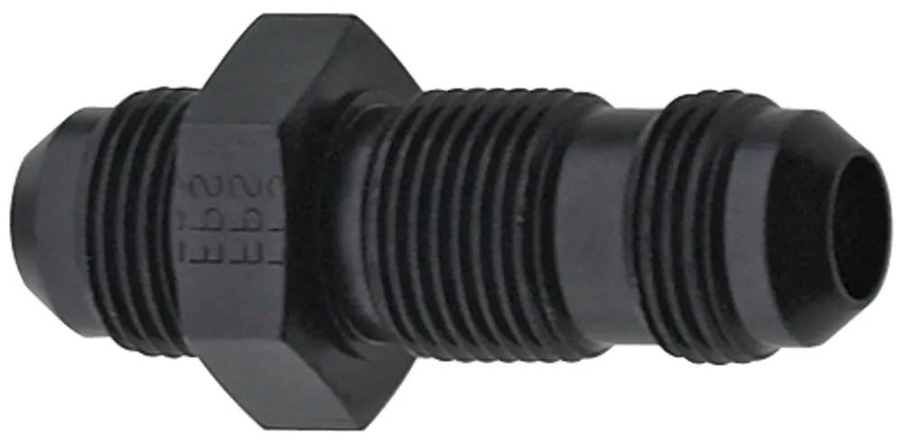 Fitting - Bulkhead - Straight - 10 AN Male to 10 AN Male Bulkhead - Aluminum - Black Anodized - Each