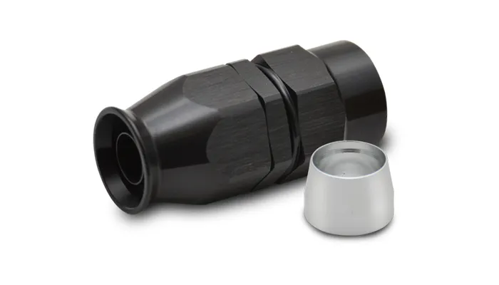 Description: Vibrant’s offering of non-swivel High Flow Hose End Fittings, designed exclusively for use with our offering of PTFE lined flex hose, deliver the type of quality, leak-free reliability and incredible ease of assembly that industry professionals will appreciate. Now also available in -12 AN. These CNC Machined 6061 Aluminum Alloy Hose Ends feature a full flow design and are optimal for use in race fuel systems as well as Nitrous, Cooling, Oil, Power Steering and Coolant (not suited for brake and hydraulic line applications). Each of these Hose Ends include an Aluminum olive that compresses to the PTFE liner for simple, leak free assembly. Available in Black Hard Anodized finish only.