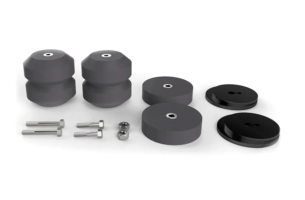 Weight from a snowplow or heavy aftermarket accessories can cause dangerous front-end sag and sway. When heavy weight is distributed only onto the front two tires, it can create difficult handling conditions and risk damage to your front-end suspension from bottoming out. Our Timbren SES front kits level out your front-end load, making for a safe, controlled ride . How? Our Aeon® rubbers springs deliver a progressive spring rate. As load increases, our rubber springs push back harder, eliminating squat, sway, and roll to put you back in control of your vehicle. After installation, the rubber spring should be in contact with the front axle. What makes Timbren SES kits different from other suspension enhancement systems? Unlike air bags, our kits require zero post-installation maintenance . And unlike other systems, you can install and haul in under 30 minutes , right from your driveway.