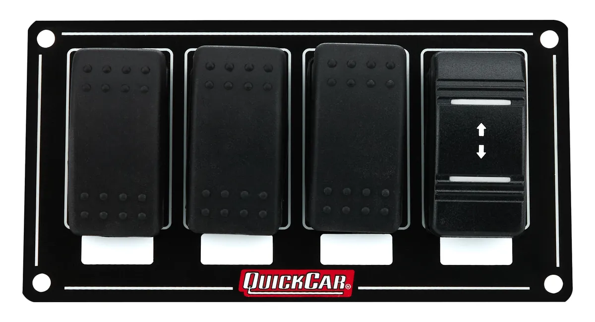 Switch Panel - Dash Mount - 5.75 x 3 in - 3 Rockers / 1 Momentary Rocker - Lighted - Black - Each