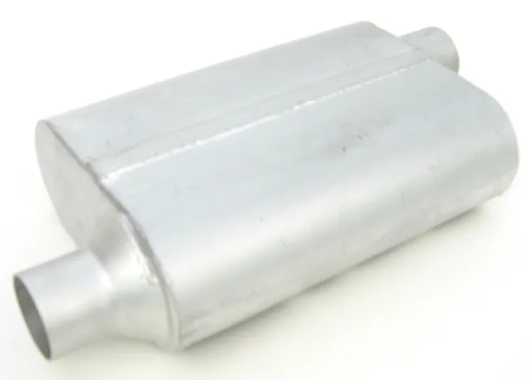 - Thrush Welded - 2.25 in Offset Inlet - 2.25 in Offset Outlet - 13 x 4 x 9.5 in Oval Body - 19 in Long
