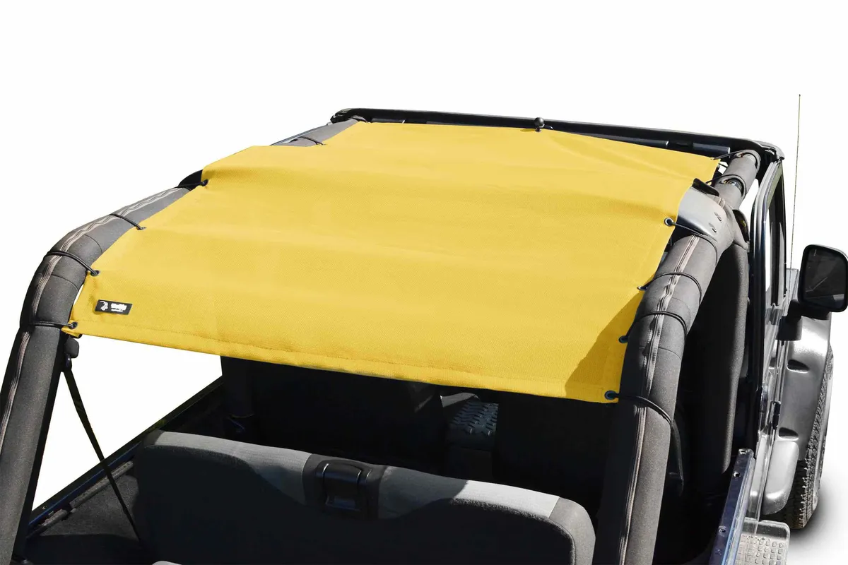 Jeep Wrangler LJ Tops and Covers 2004-2006 Fabric Teddy Yellow Full Length Make: Jeep Model: Wrangler TJ Years: 2004-2006 Covers front and rear seats This Teddy® Top Solar Screen Cover easily installs in minutes with the use of the supplied bungee balls. There are cut-outs in the top to allow you