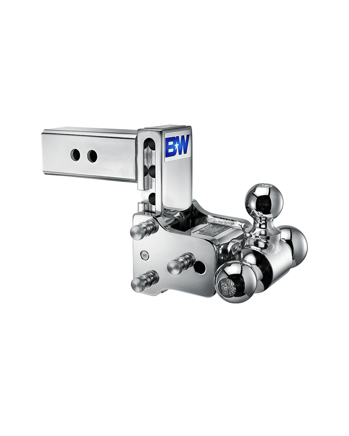 Meet the B&W Trailer Hitches Tow & Stow Adjustable Ball Mount—the American-made adjustable hitch that makes towing easier, safer, and more convenient. With two quick-pull pins, you can instantly choose from multiple drop and rise height options for a level tow. Need a rise position? Simply invert the Tow & Stow in your receiver for added versatility. When you’re not towing, the Tow & Stow helps protect your legs and your vehicle by stowing neatly behind the bumper, keeping it out of the way of shins and garage doors. It’s built to handle a variety of towing needs with multiple trailer coupler sizes—just pull the pin and rotate the swing arm to select the ball size you need. For added security, once the Tow & Stow is locked into your receiver, the swing arm can’t be removed. A durable slide pin retention system keeps everything firmly attached, giving you confidence on every haul.