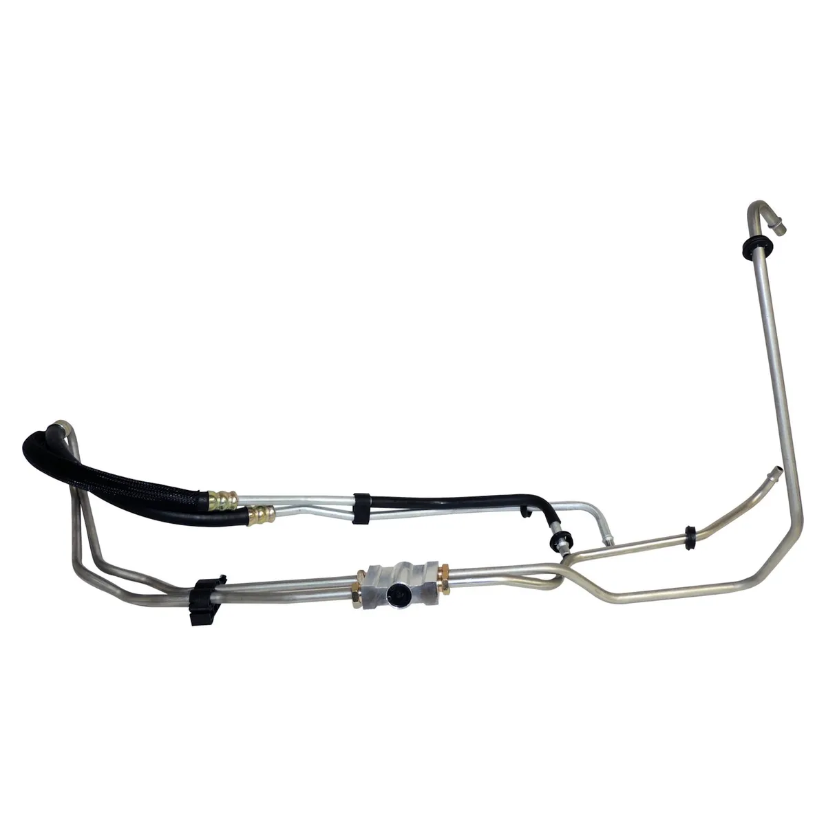 Transmission Cooler Hose Set Jeep 2012-2018 JK Wrangler w 3.6L Engine 2014-2018 JK Wrangler w 3.0L Gasoline Engine w W5A580 Transmission Transmission Cooler Supply and Return Hose Set Connects to the Transmission at one end and to the Line Set near