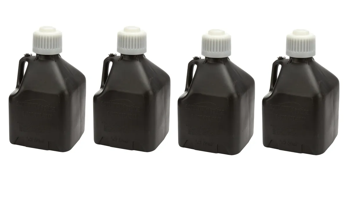 Utility Jug - 3 gal - 9.5 x 9.5 x 16 in Tall - Gasket Seal Cap - Flip-Up Vent - Square - Plastic - Black - Set of 4