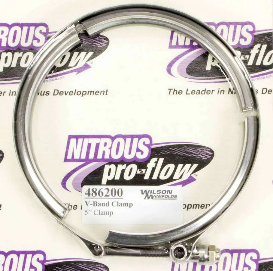 This Part includes the 5" V-Band Clamp only Wilson Manifolds High Flow Throttle Bodies were developed using the latest computer modeling software and test equipment available to produce designs that yield the maximum flow per square inch of cross-sectional area. This results in maximum power for any given throttle body type and size. All throttle bodies feature brass throttle blades to control vibration and reduce thermal expansion Throttle blades are fastened to the throttle shaft using aircraft quality hardware that is both Loctited and peened to assure positive retention of the blades. Throttle shafts are machined to decrease their cross-sectional area, which increases the actual cross-section available for airflow. All throttle bodies are machined from billet 6061-T6 aluminum on precision CNC machining centers for consistent quality and light weight. These high flow throttle bodies are available in sizes from 65mm to 105mm.