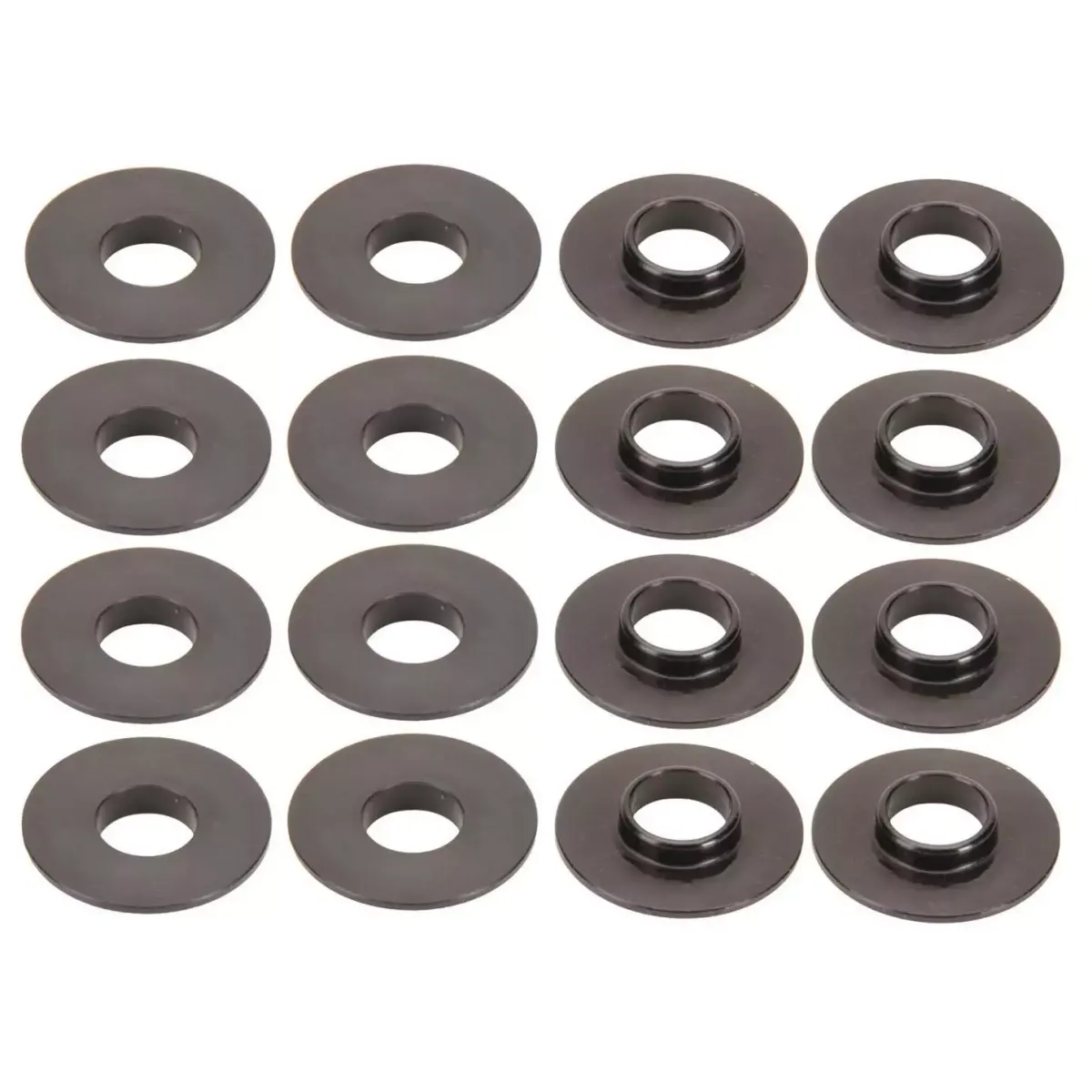 Valve Spring Locator - Inside - 0.062 in Thick - 1.410 in OD - 0.567 in ID - 0.690 in Spring ID - Steel - Black Oxide - Set of 16