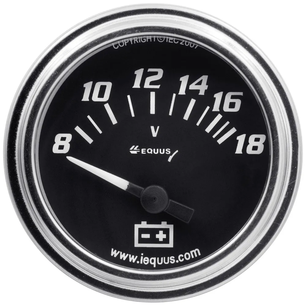 Voltmeter - 7000 Classic Series - 8-18V - Electric - Analog - Short Sweep - 2 in Diameter - Black Face - Each