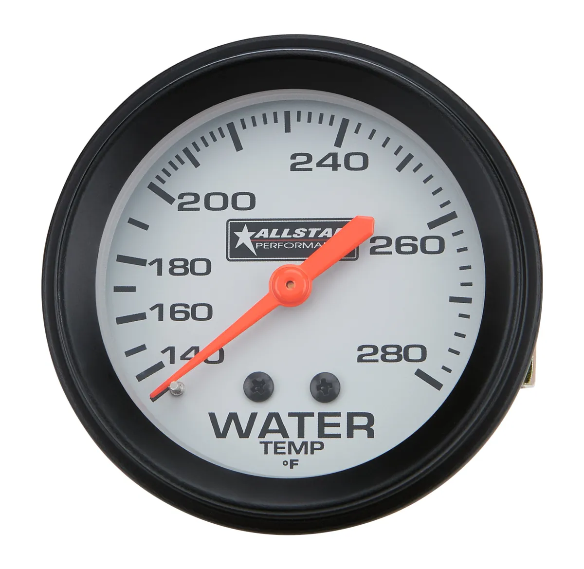 Water Temperature Gauge - 140-280 Degree F - Mechanical - Analog - Full Sweep - 2-5/8 in Diameter - Silver Face - Each