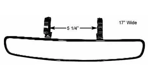 Mirror - Rear View - Wide Angle - 17 in Wide x 3 in Tall - Clamp-On - 1.75 in OD Tube - Aluminum / Plastic - Black - Kit