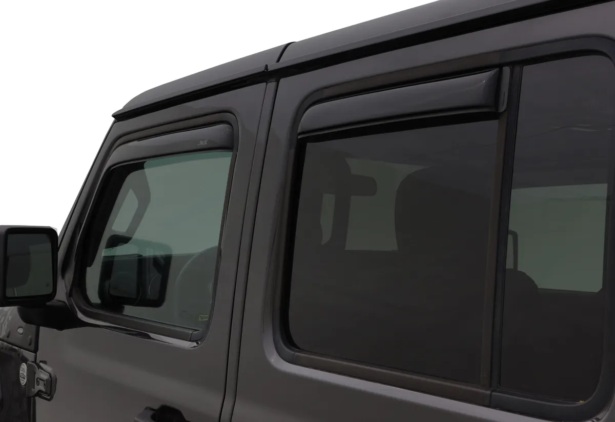 Side Window Visor - In-Channel Ventvisor - Stick-On - Front / Rear - Plastic - Smoke - Jeep Gladiator 2020-25 / Jeep Wrangler JL 2018-25 - Kit