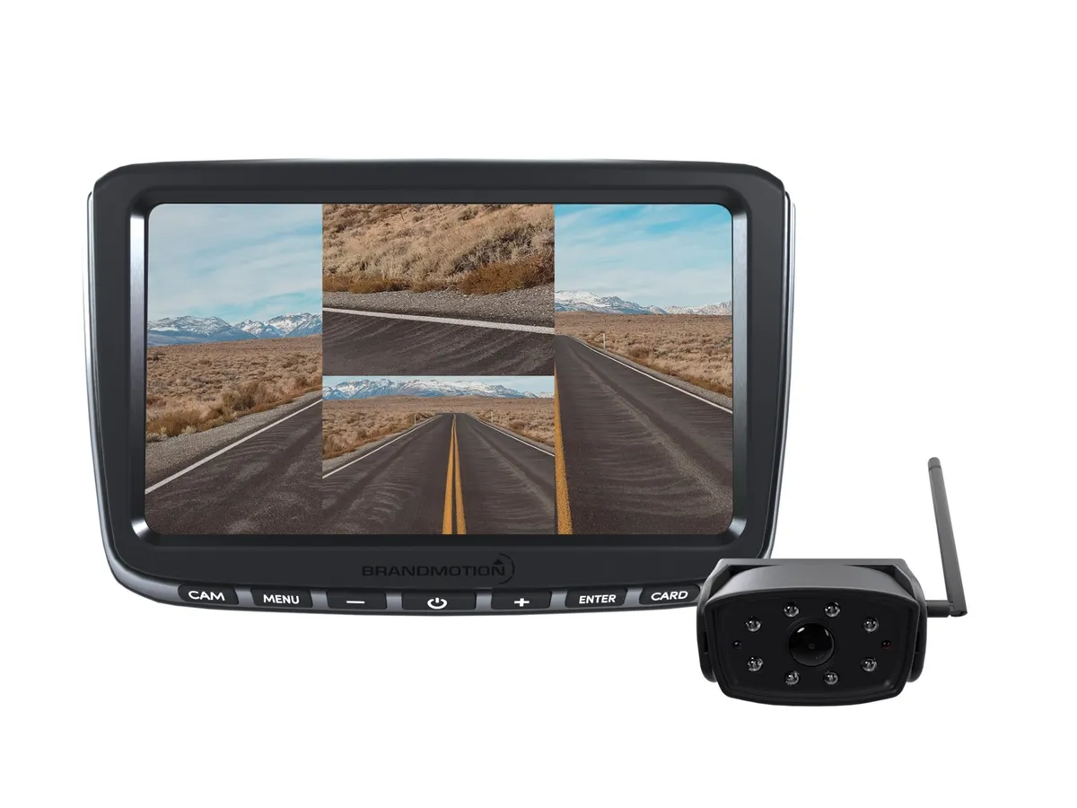 Waterproof Camera,No Tool Adjustment,Incl. Pigtail wire Plug Mounting Adaptors Compatible w/Furrion and Other Pre-Wired RVs,1080p HD IR Camera,Accepts up to 4 Cameras,WIFI Connection,7 in. Color DVR Monitor with Suction Cup Mount,Recoreds As You Drive,80 ft. Wireless Range